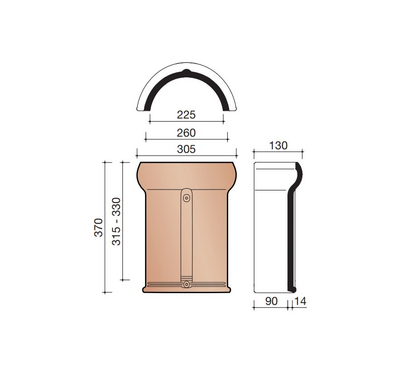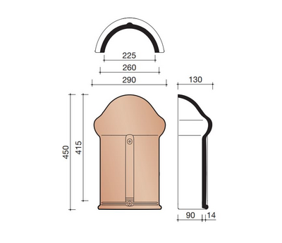 Teglstein møneslutt glassert kullsvart - KDN