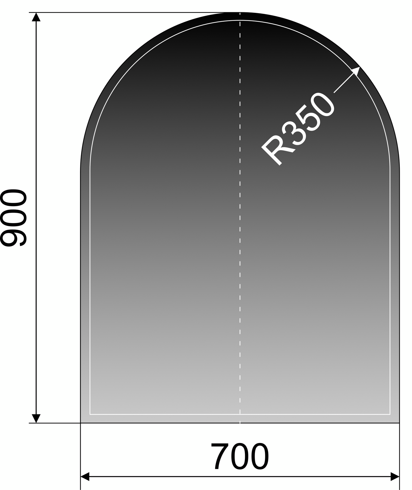 GULVPLATE 700X900X6MM S GL HALVRUND