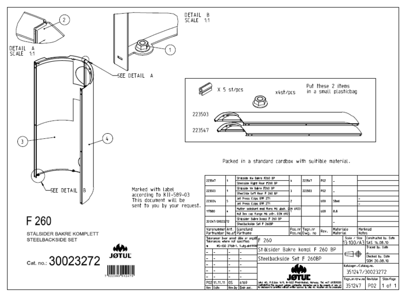 STÅLPLATE KOMPLETT SETT F 260 BP