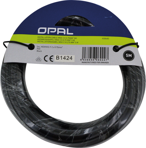 LAMPETTLEDNING 5M SVART 2X0,75MM2